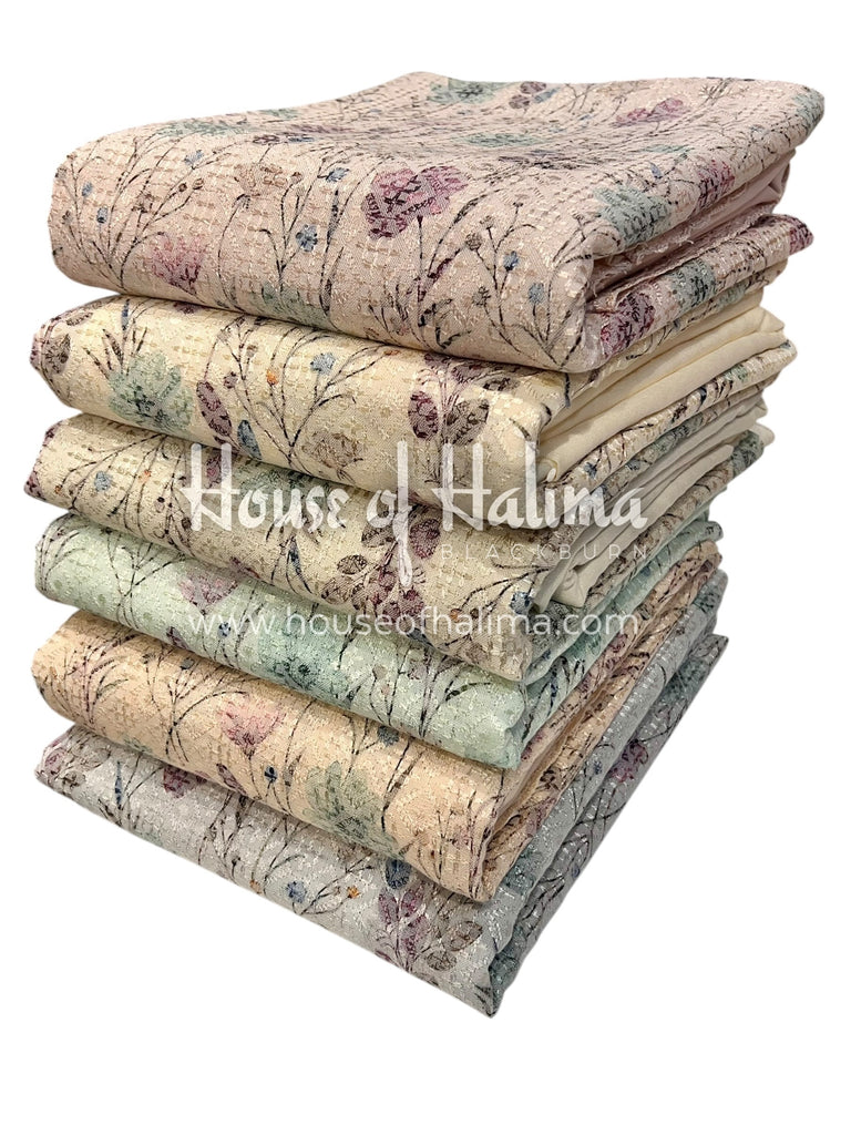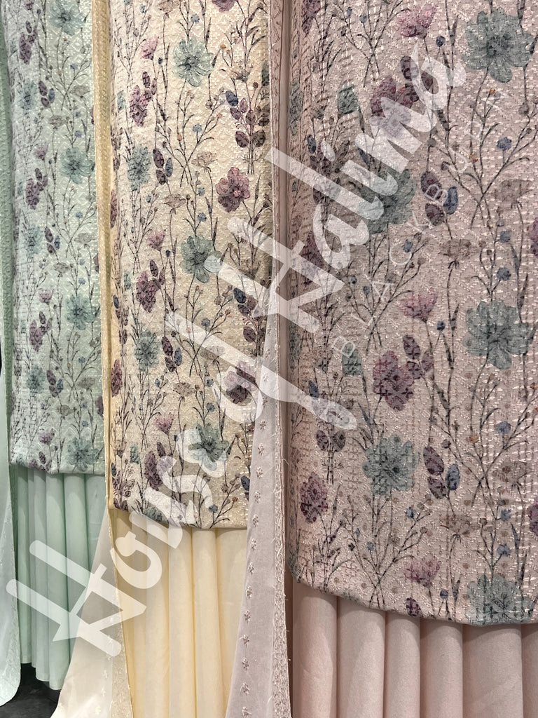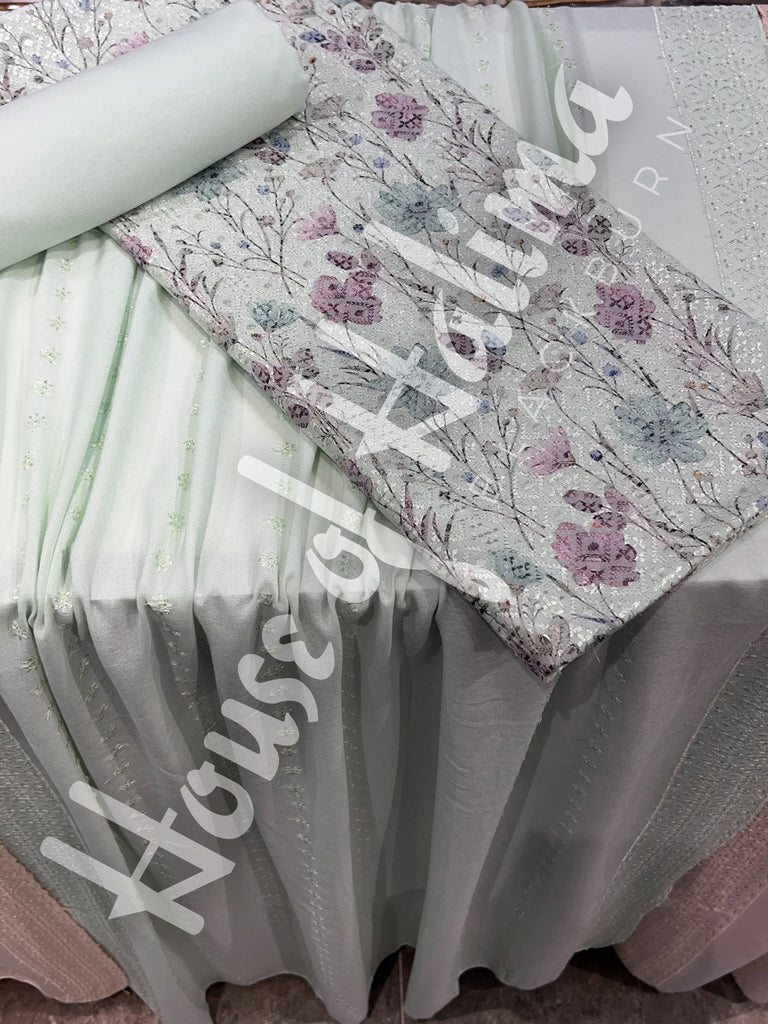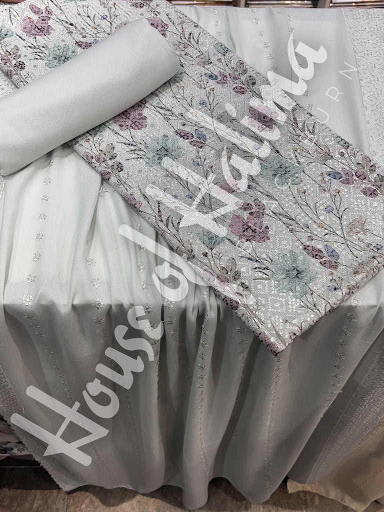 Pastel shade alpine suits with full front and back embroidery. Comes with embroidered alpine shawl.