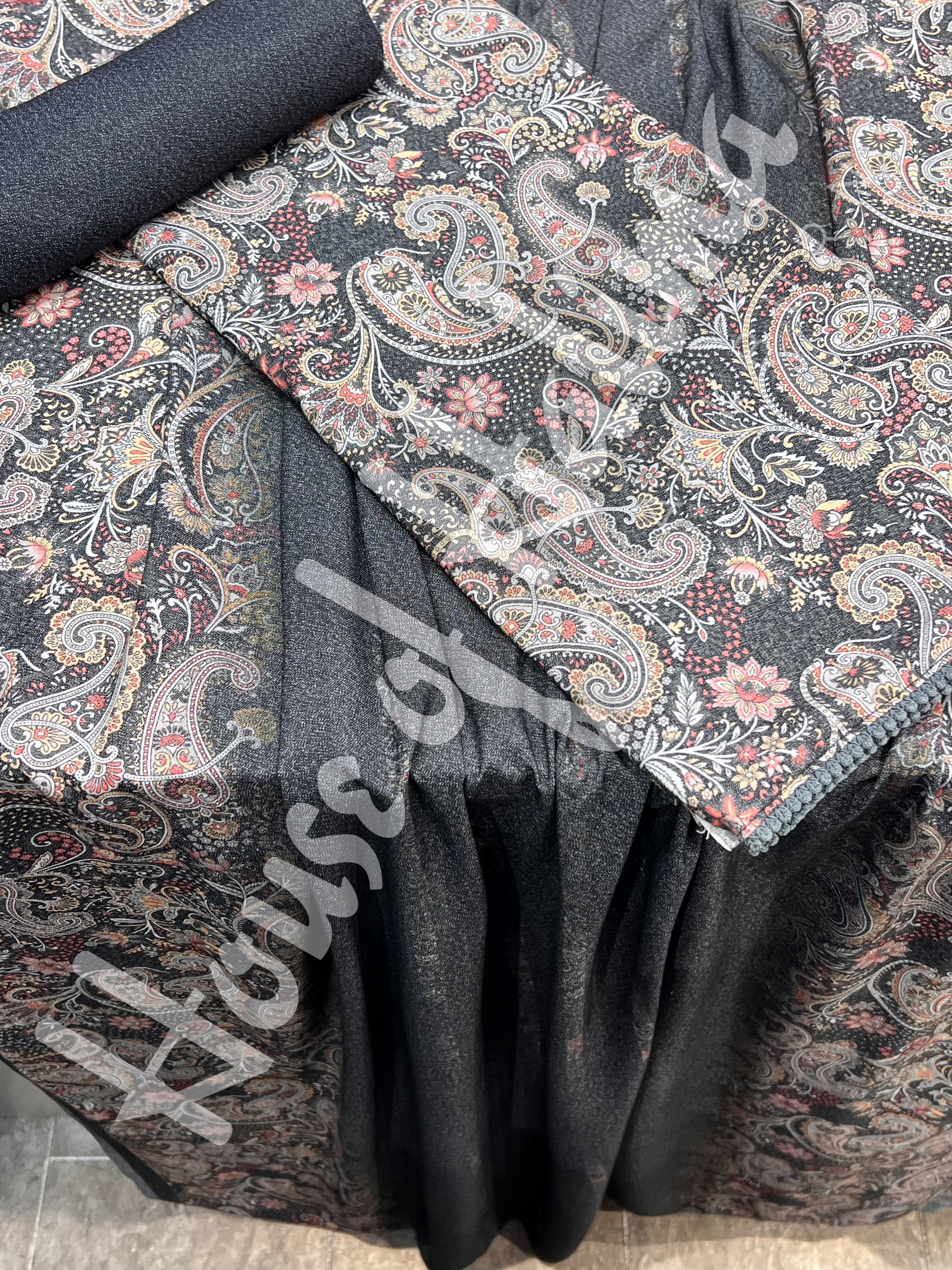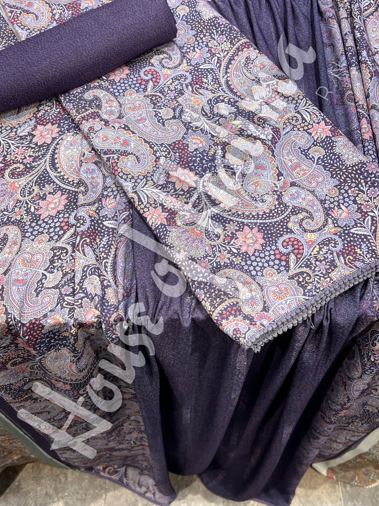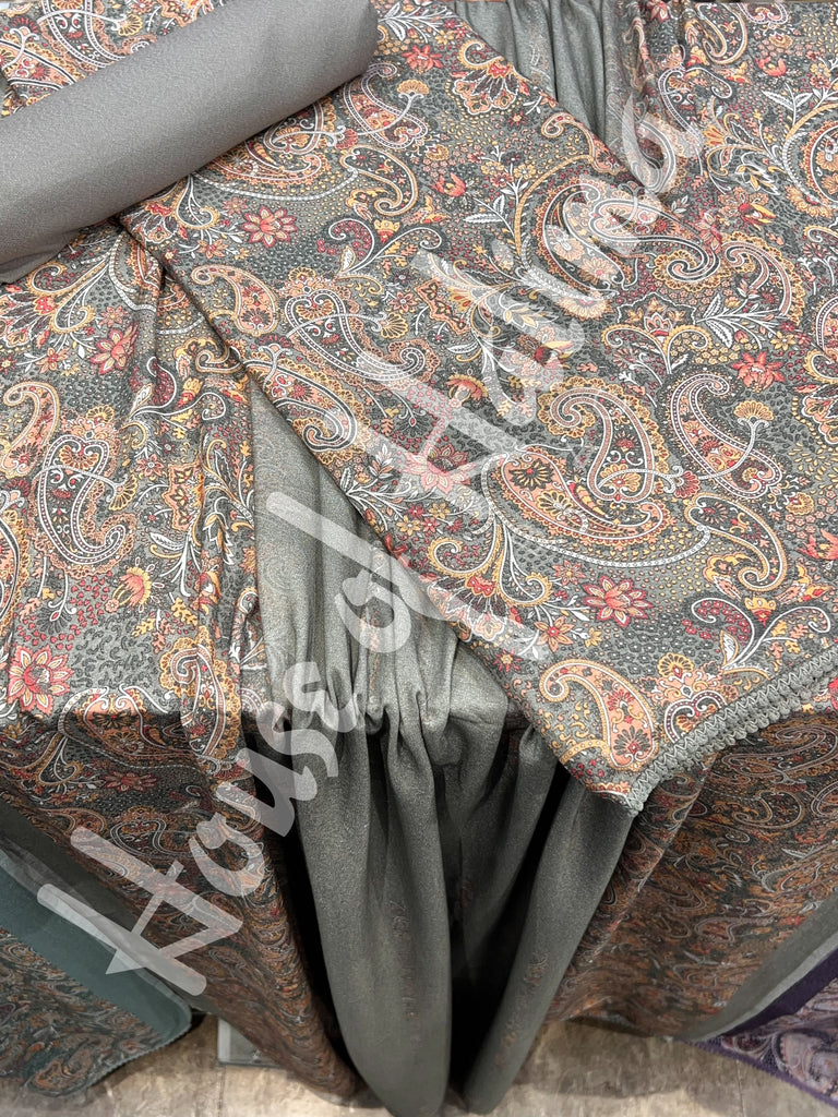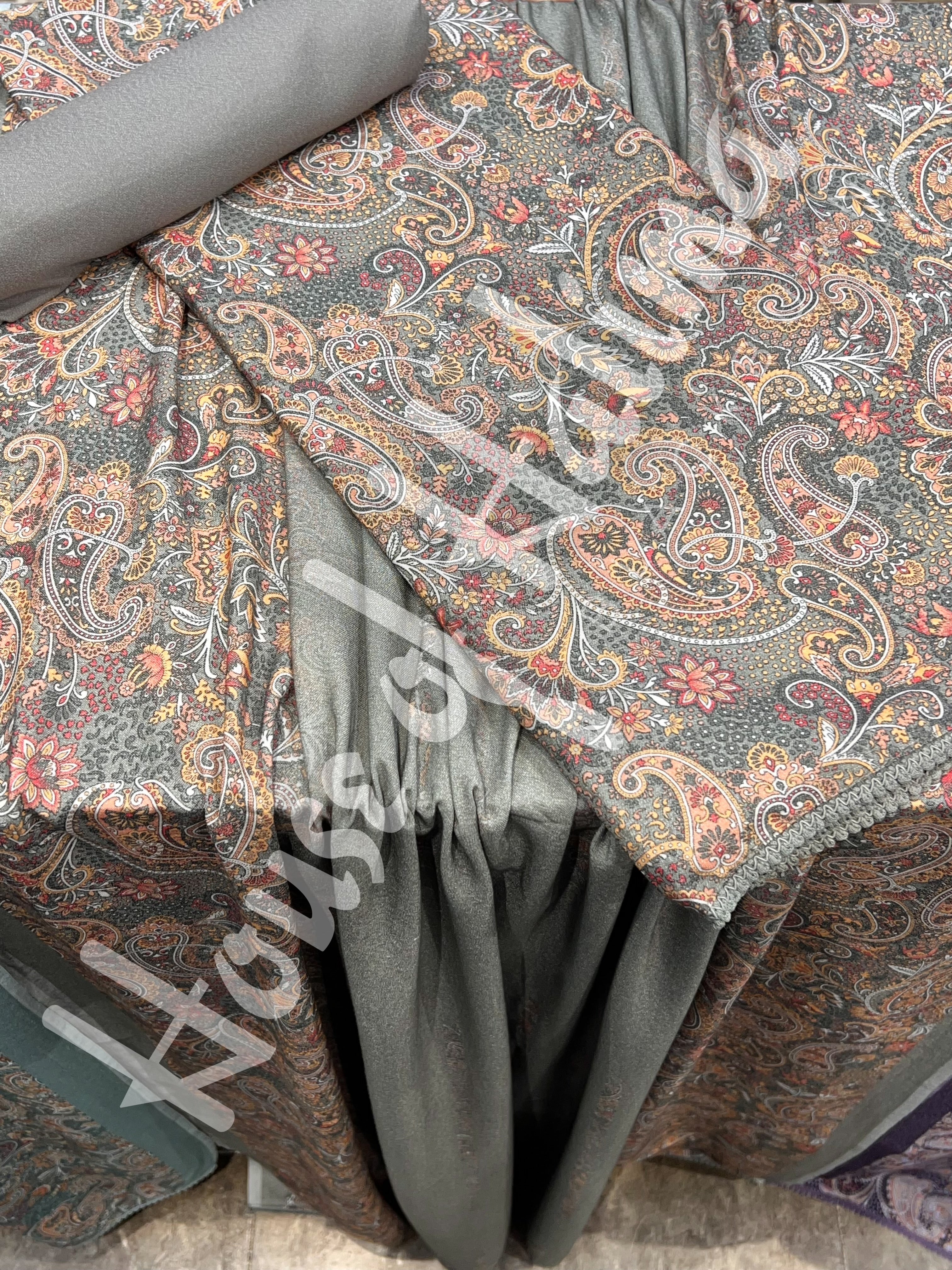 Winter alpine suits with paisley print and finishing border lace. Comes with printed alpine shawl.