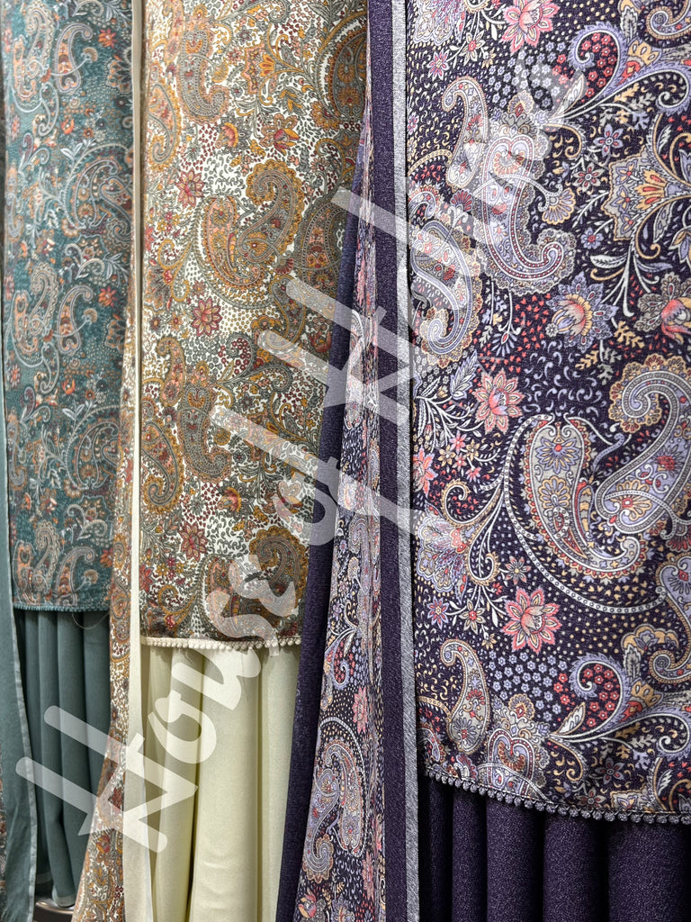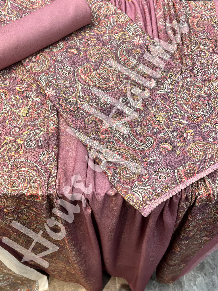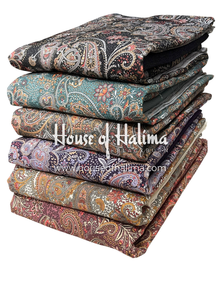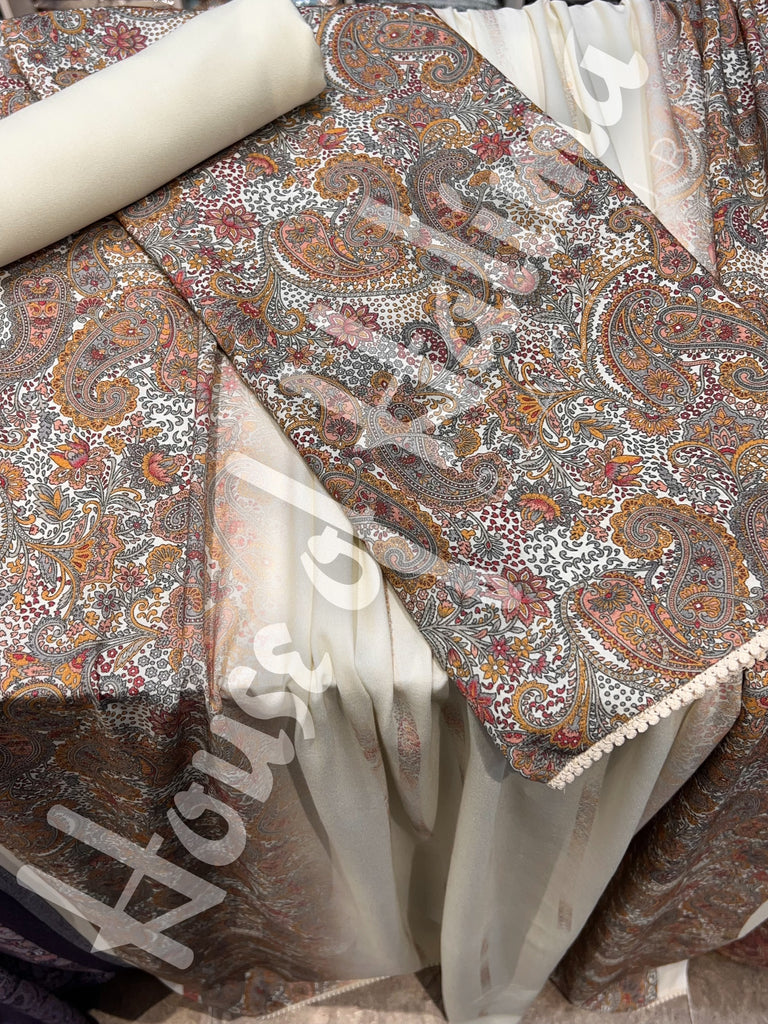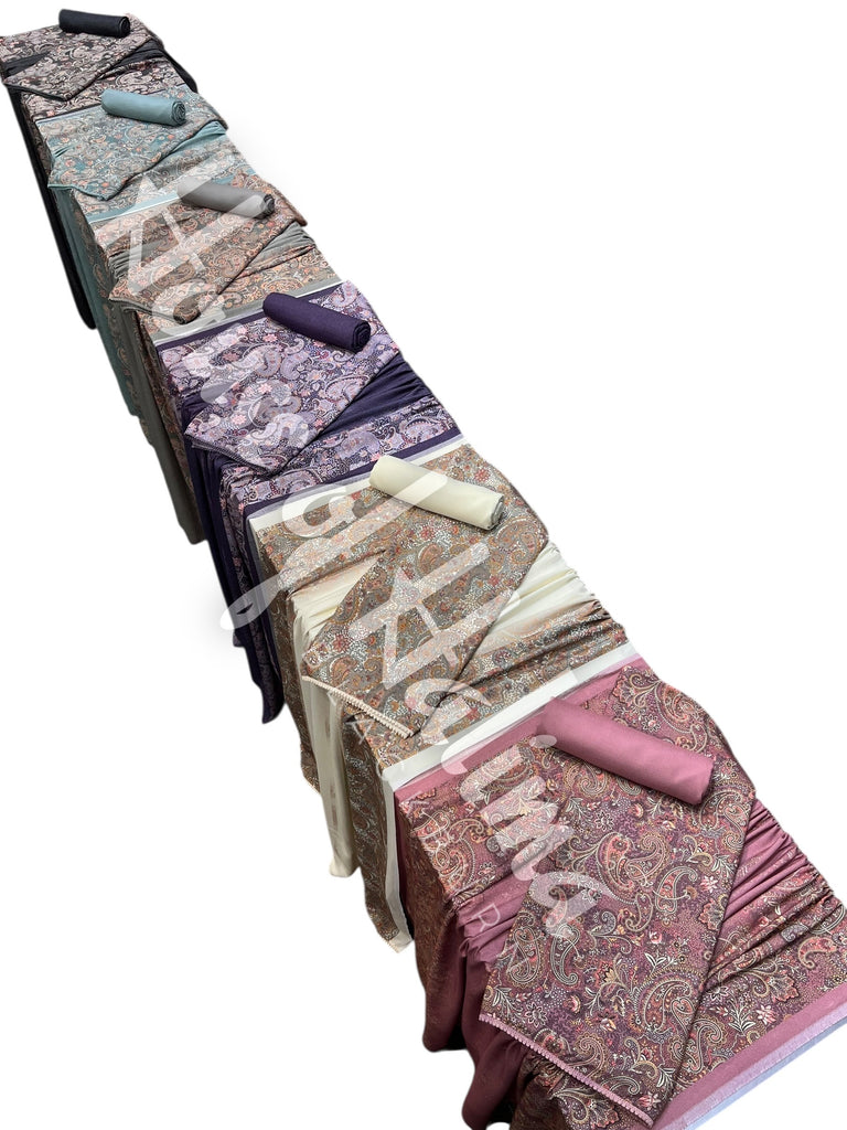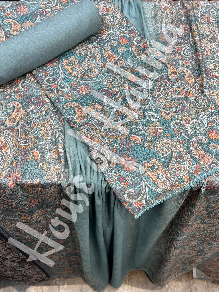 Winter alpine suits with paisley print and finishing border lace. Comes with printed alpine shawl.