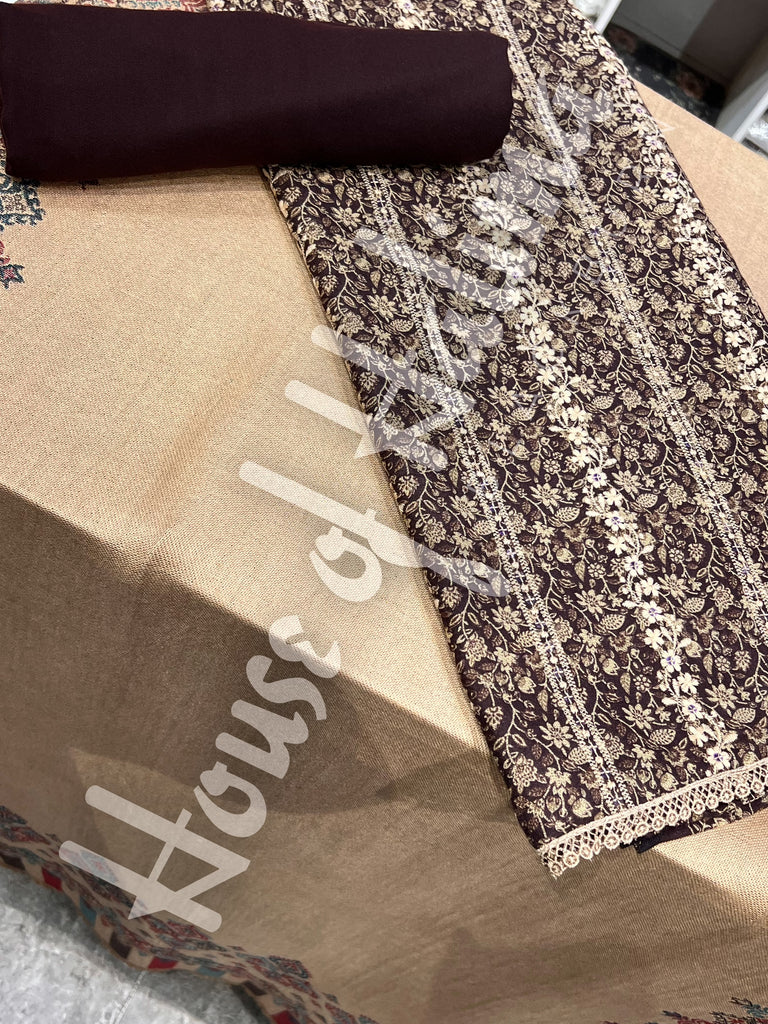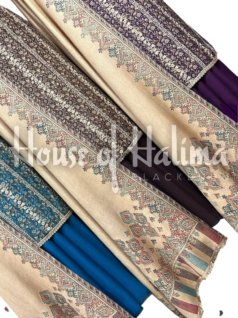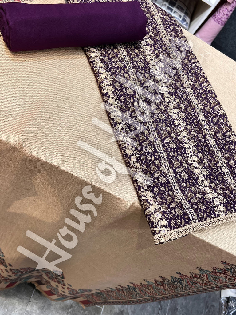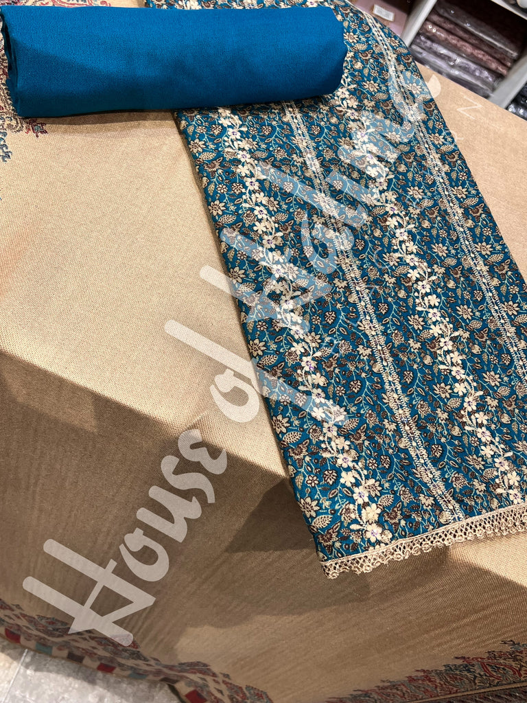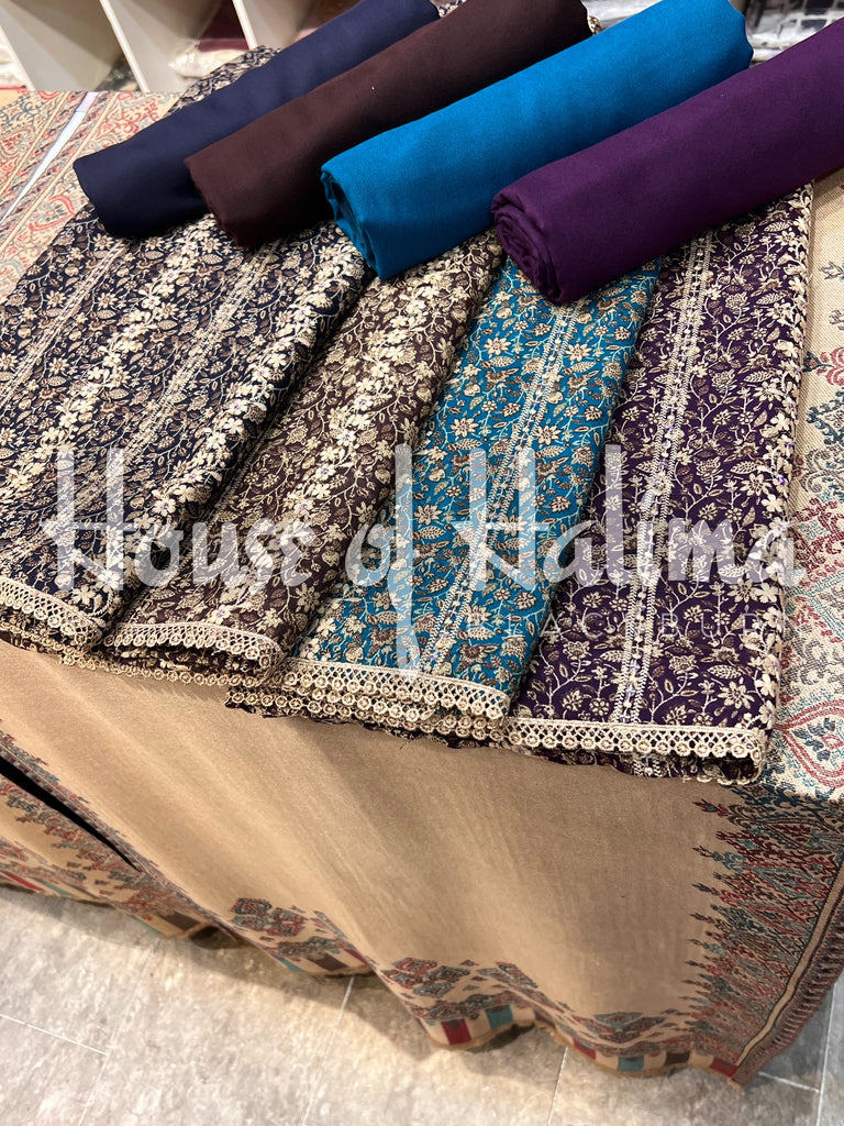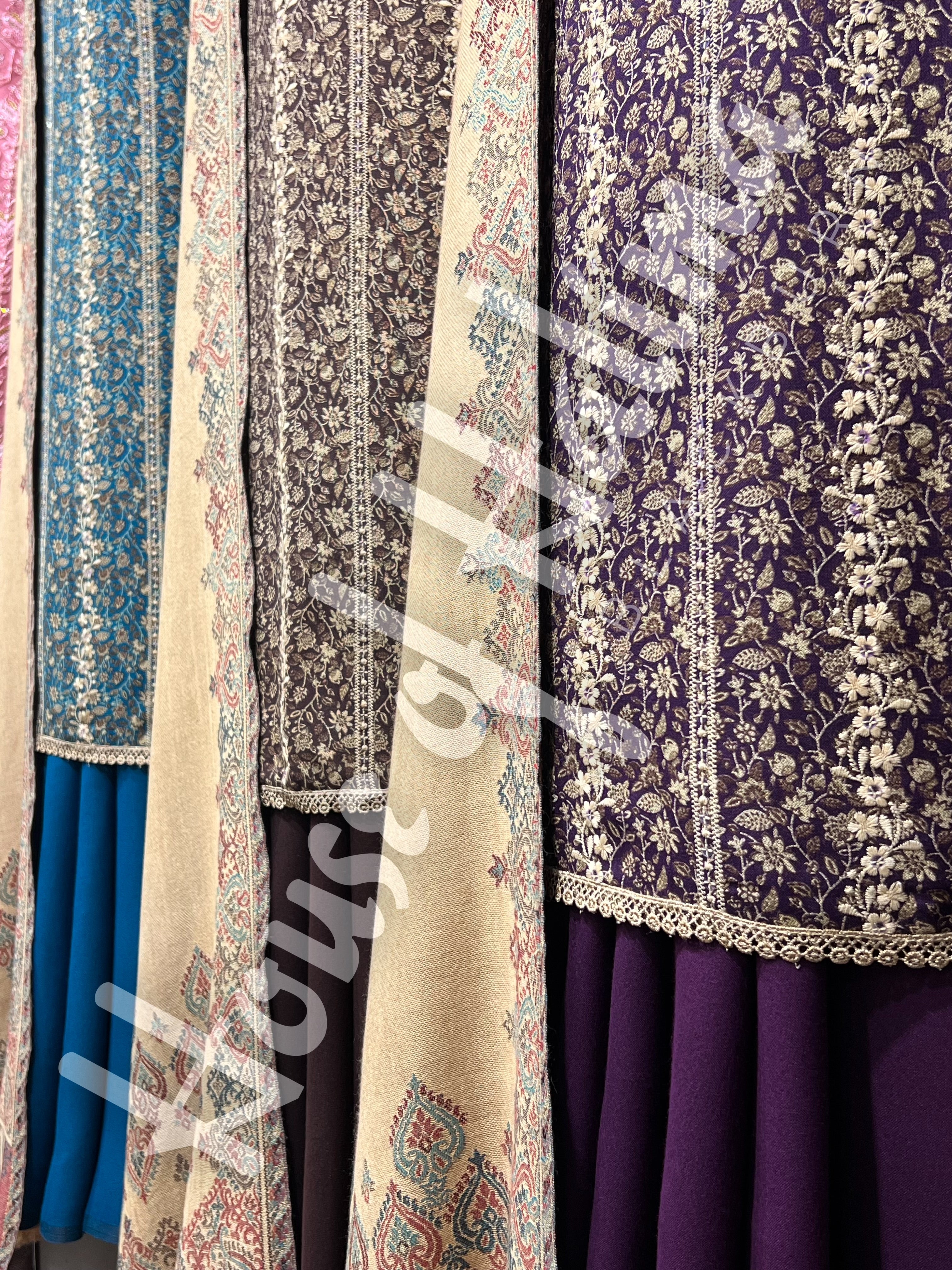 Embroidered alpine suits with full front & back embroidery. Comes with contrasting warm jacquard shawl.