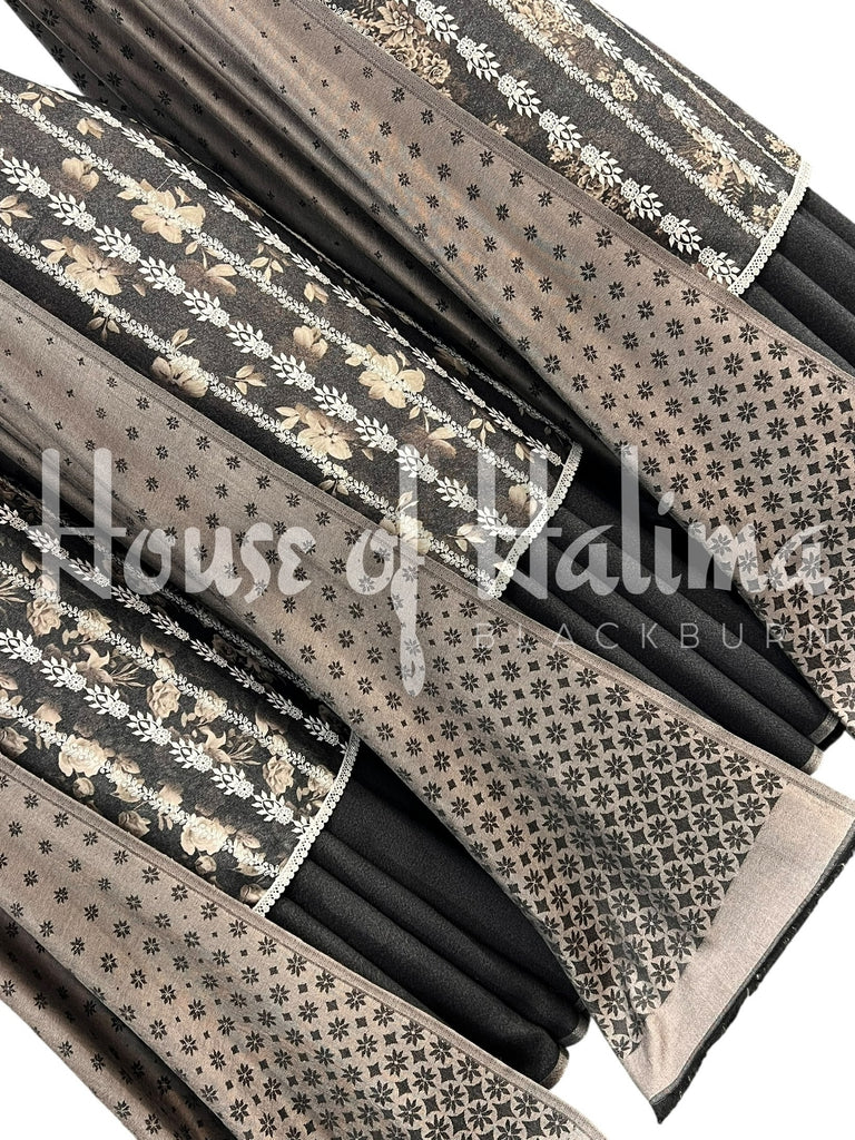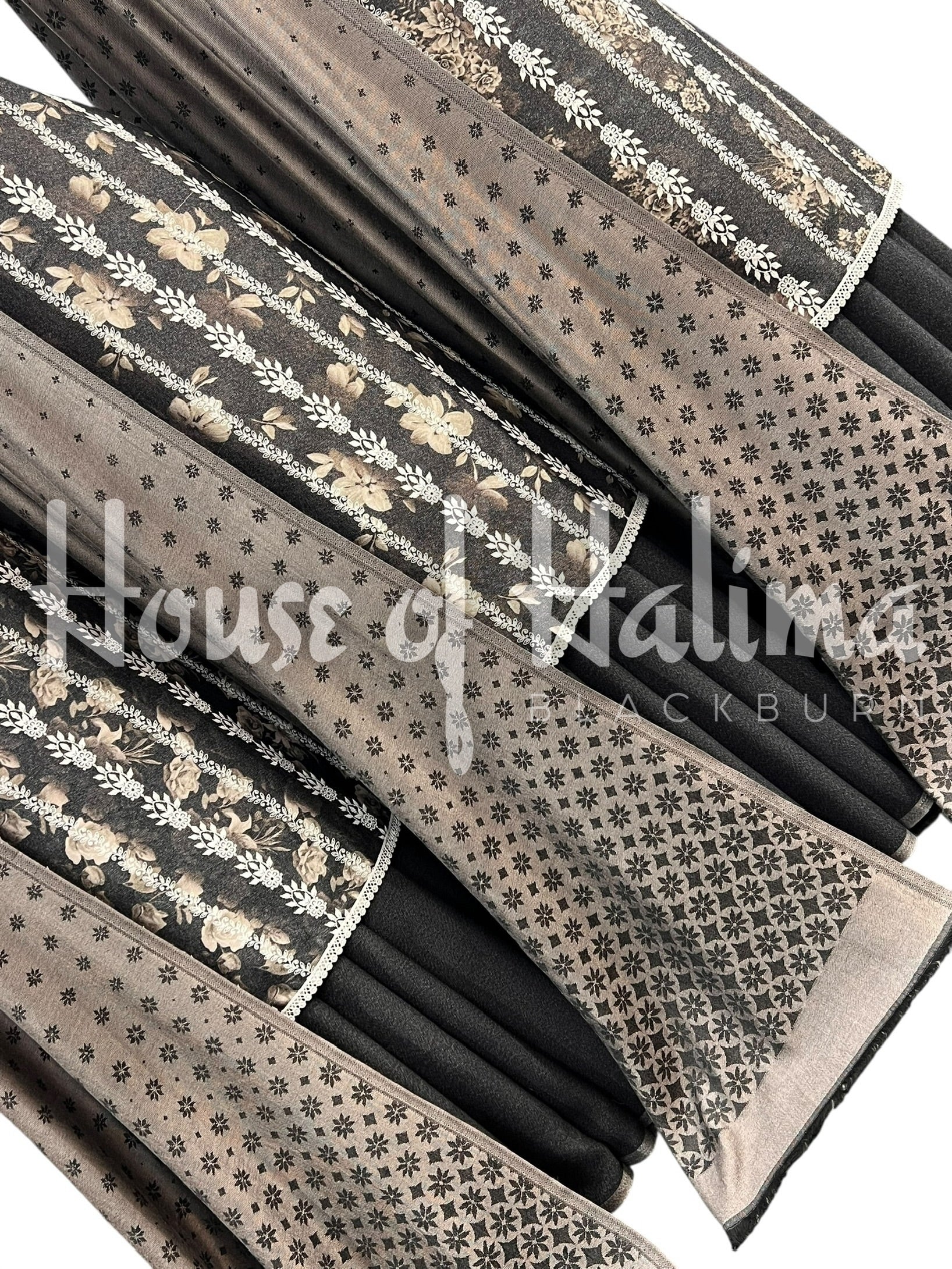 Black alpine suits with full front & back embroidery. Comes with warm shawl.