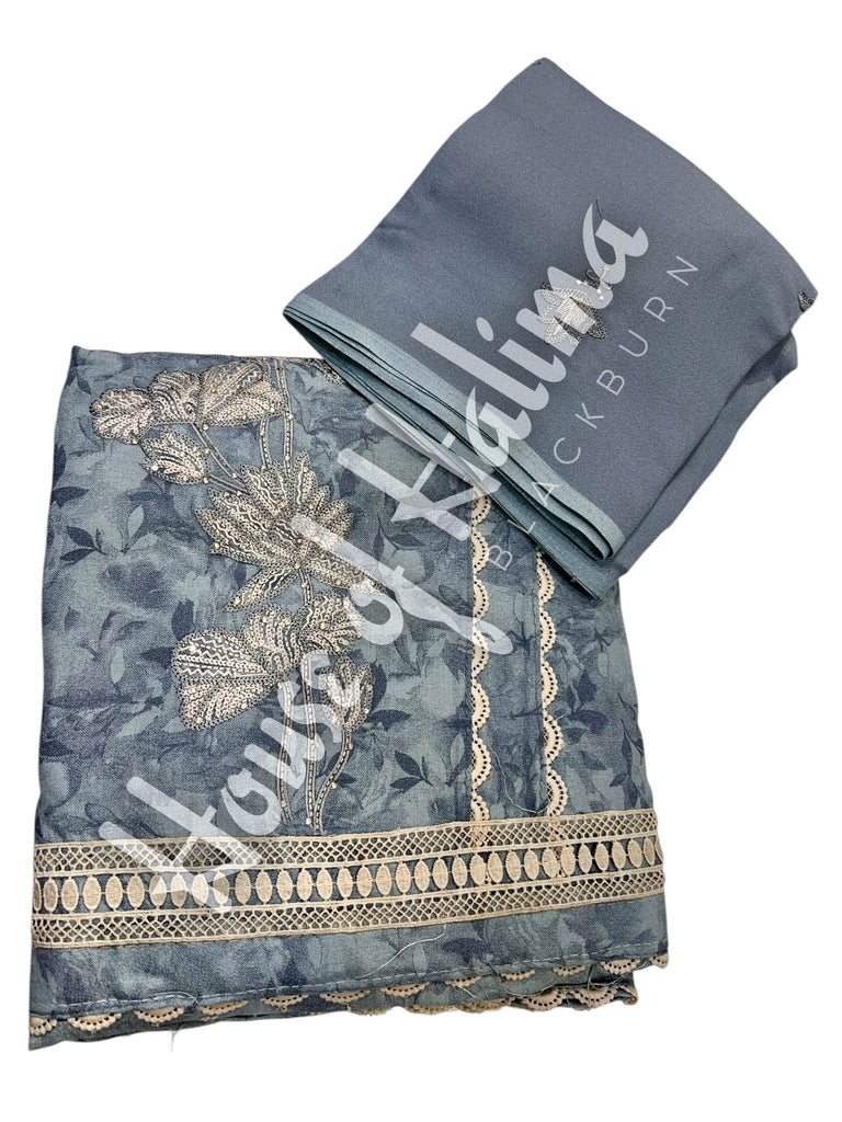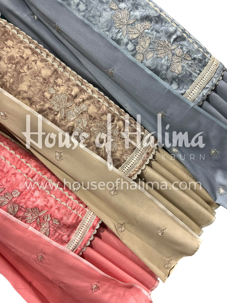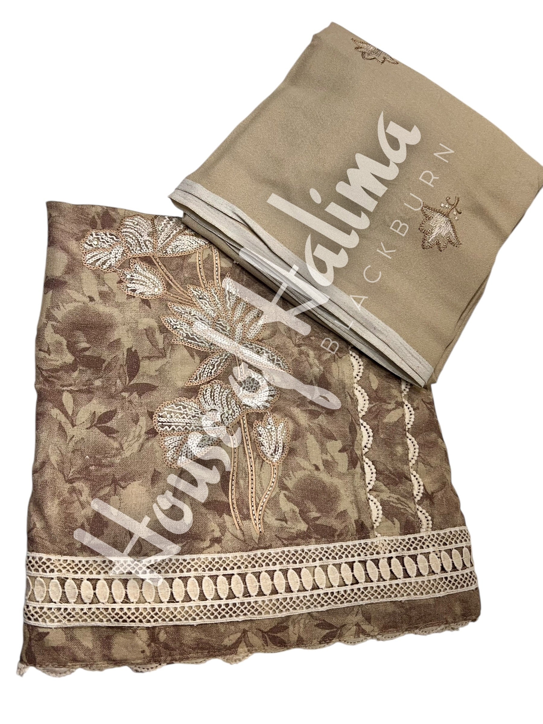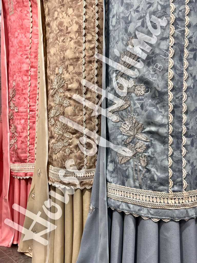 Winter alpine suits with panel design and thread embroidery. Comes with embroidered alpine shawl.