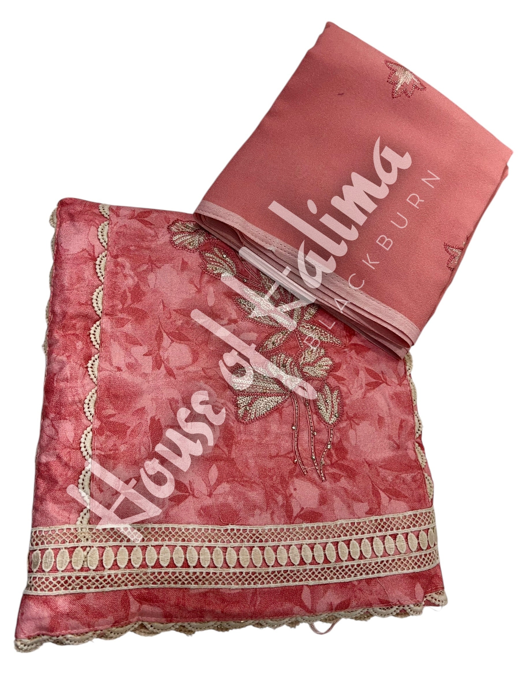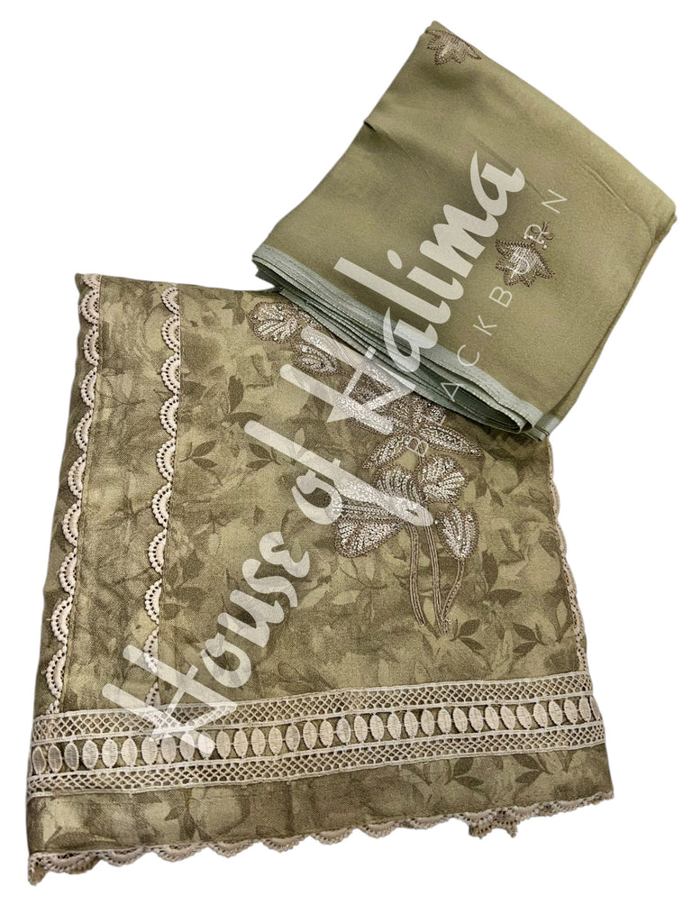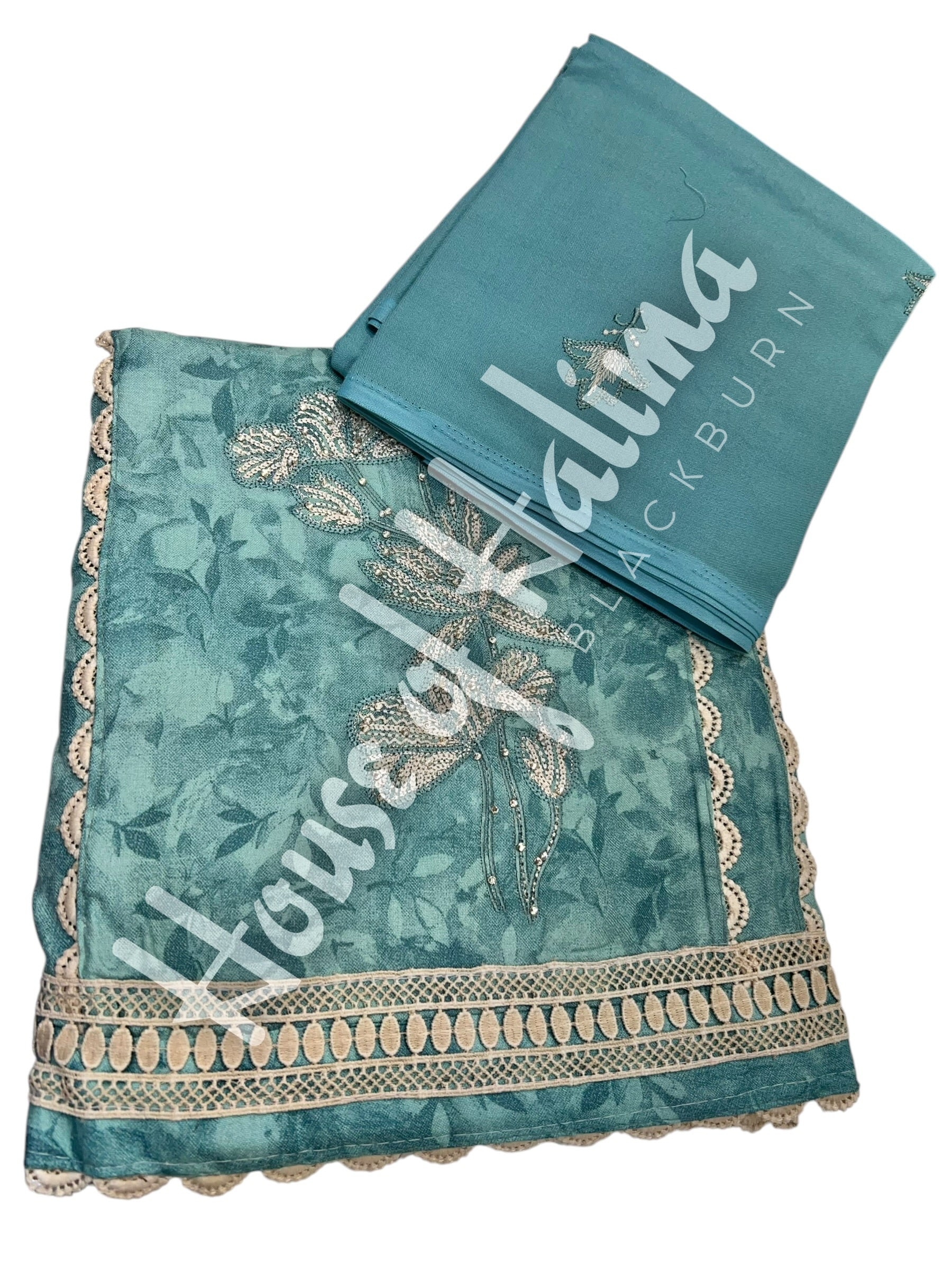 Winter alpine suits with panel design and thread embroidery. Comes with embroidered alpine shawl.