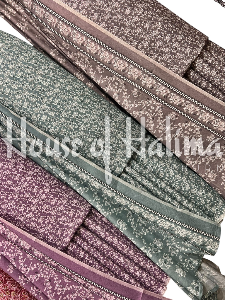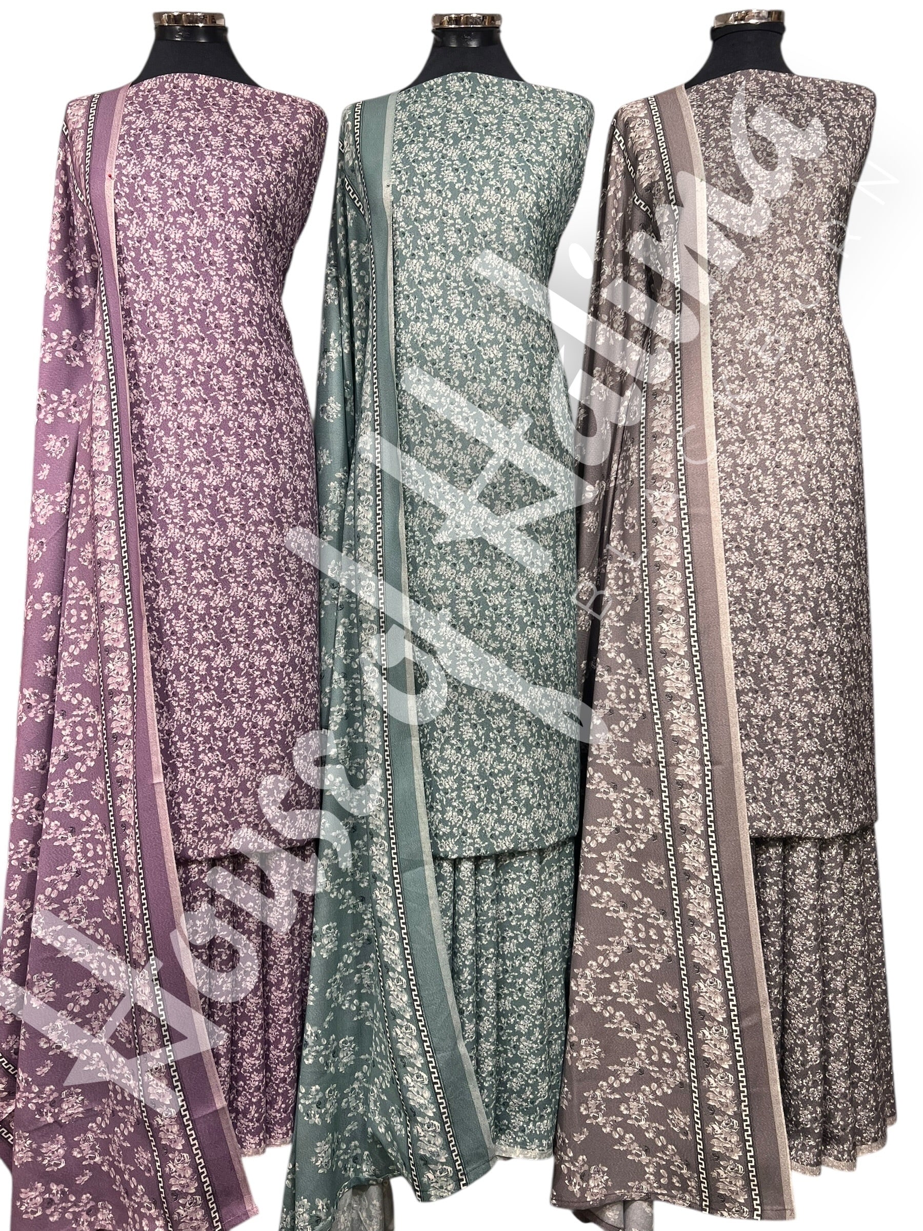 Full print alpine suits with ditsy floral print in a variety of stunning wintery shades. Comes with printed alpine shawl.