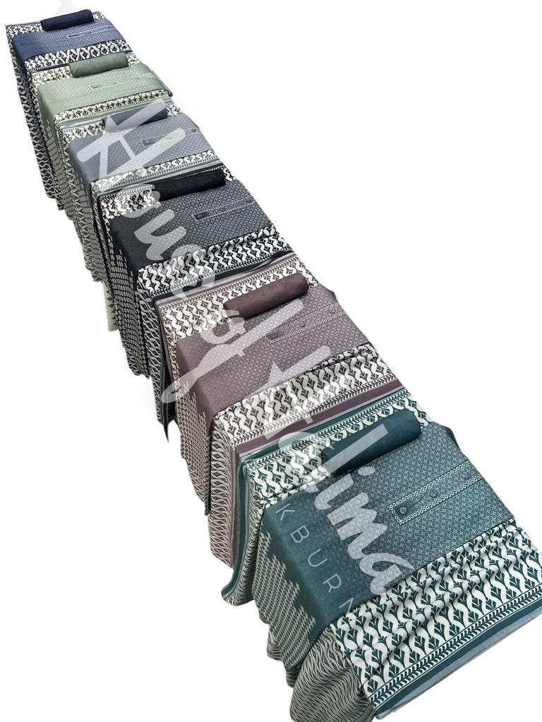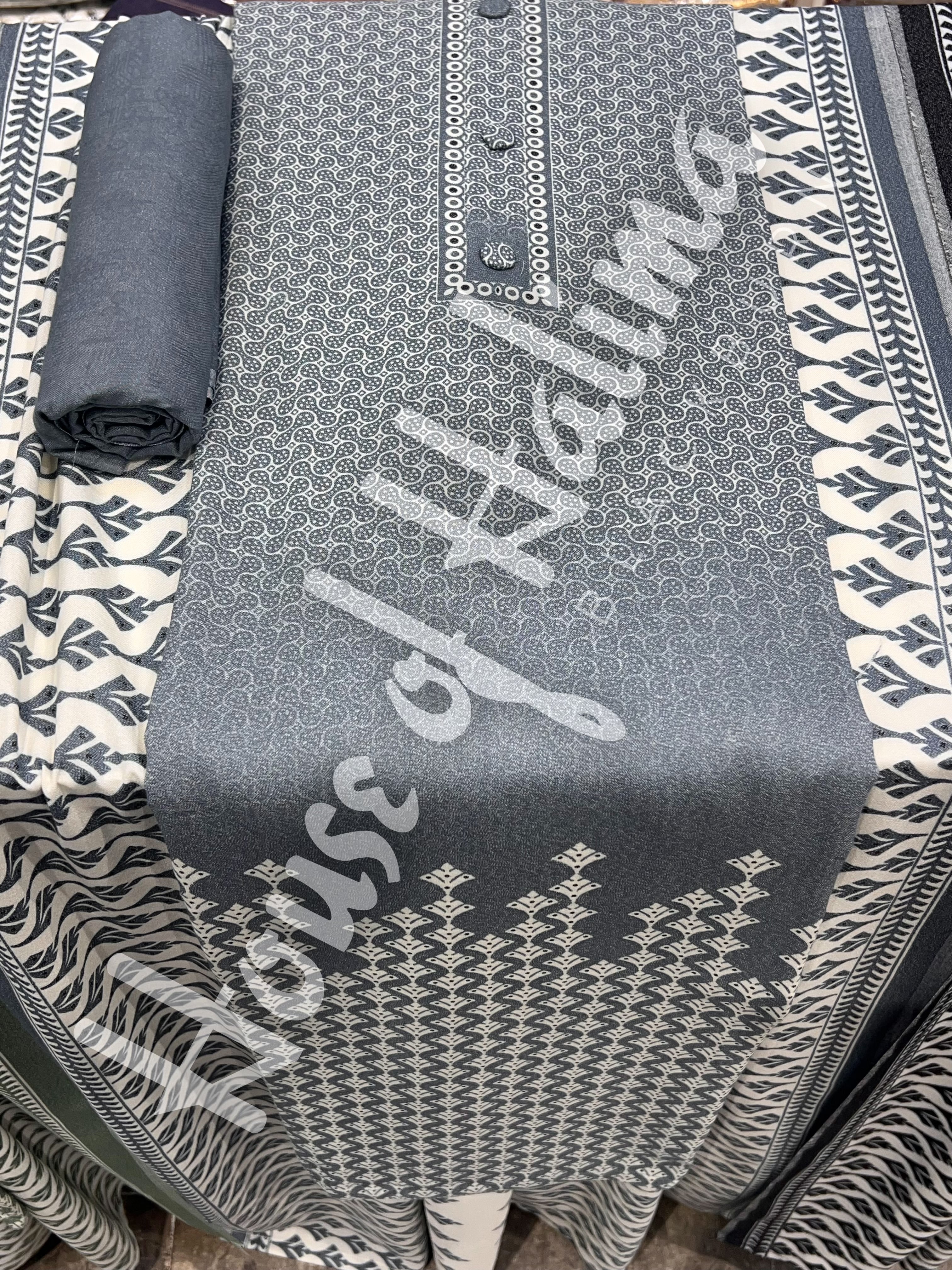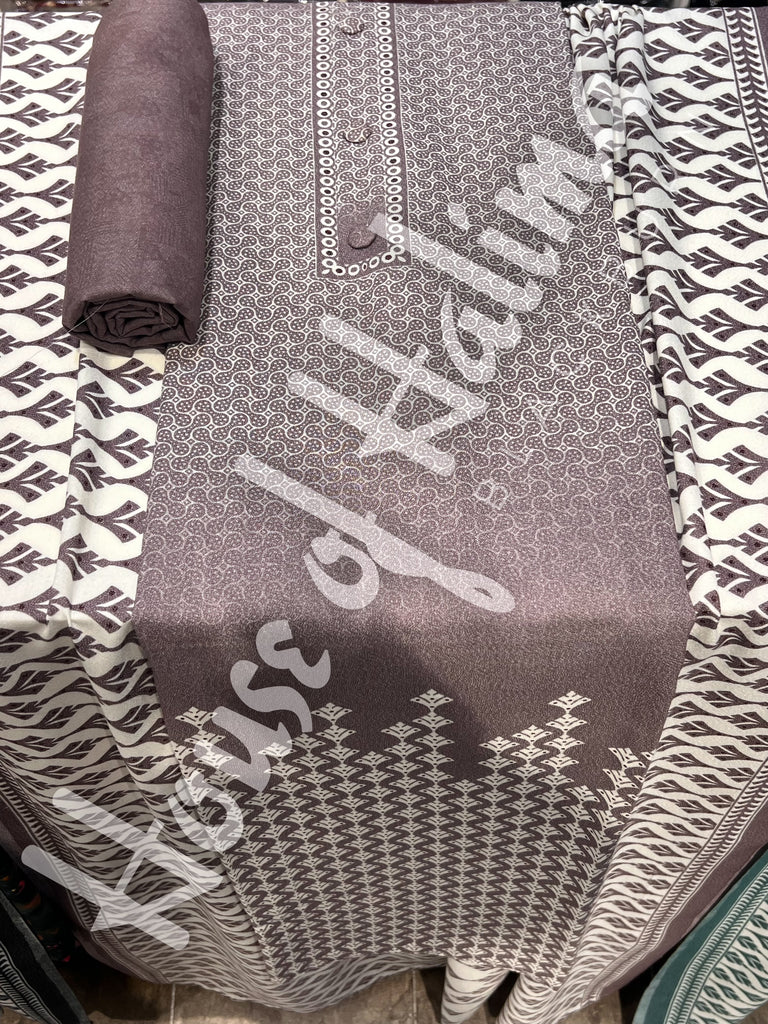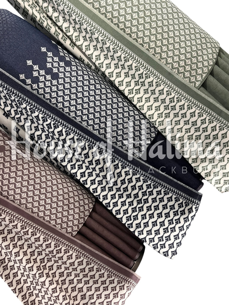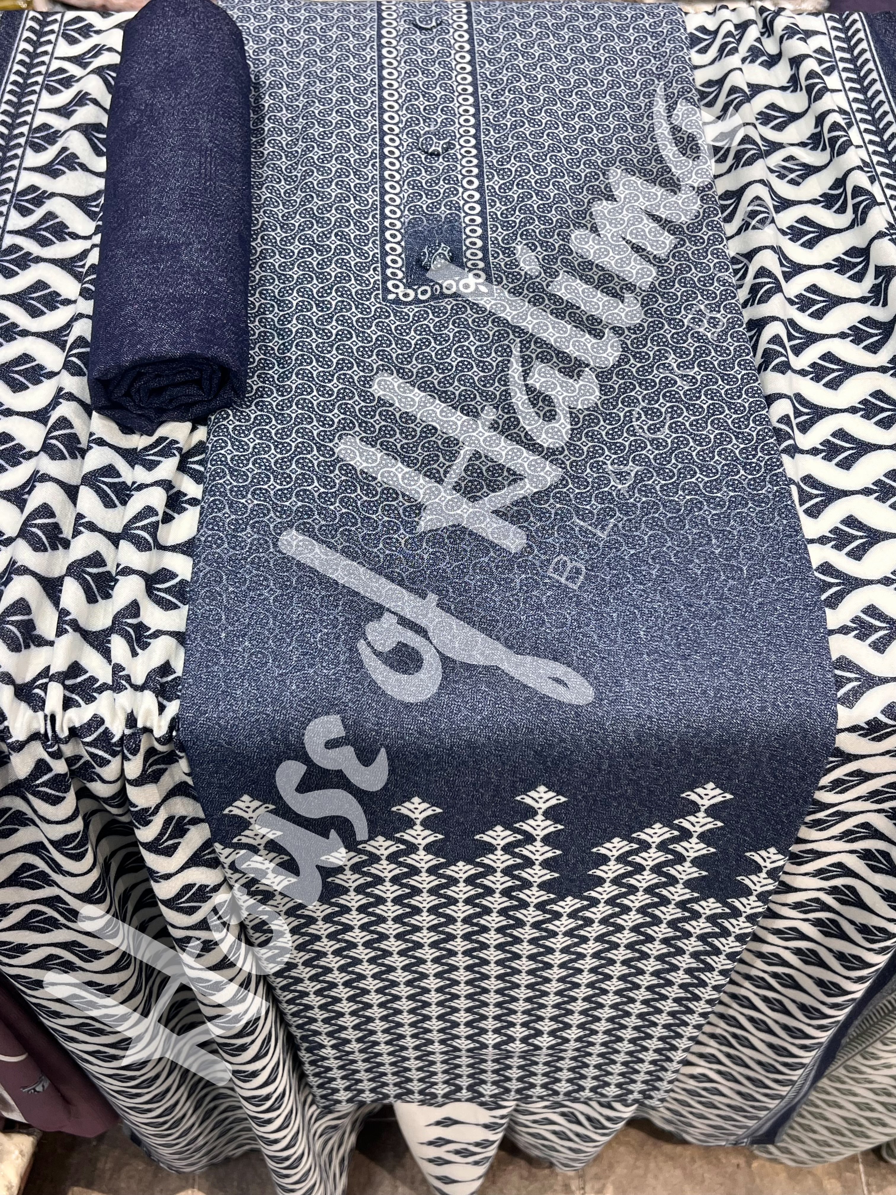 Printed alpine suits with button detailing, accompanied with a printed alpine shawl.