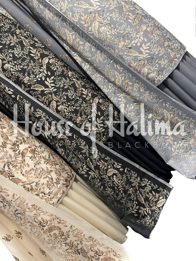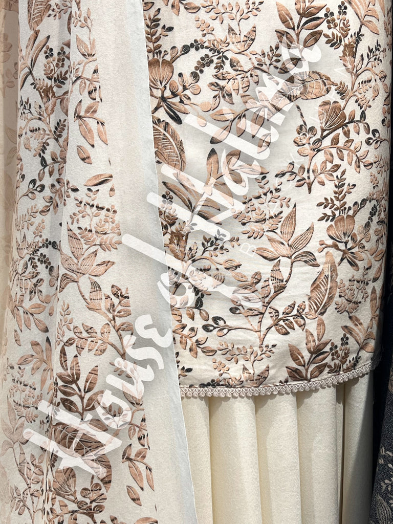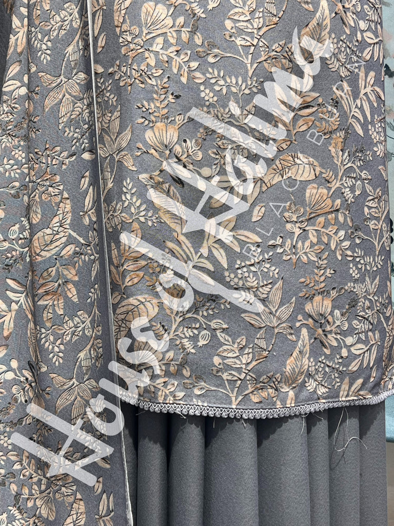 Winter alpine suits with leafy print and finishing border lace. Comes with printed alpine shawl.