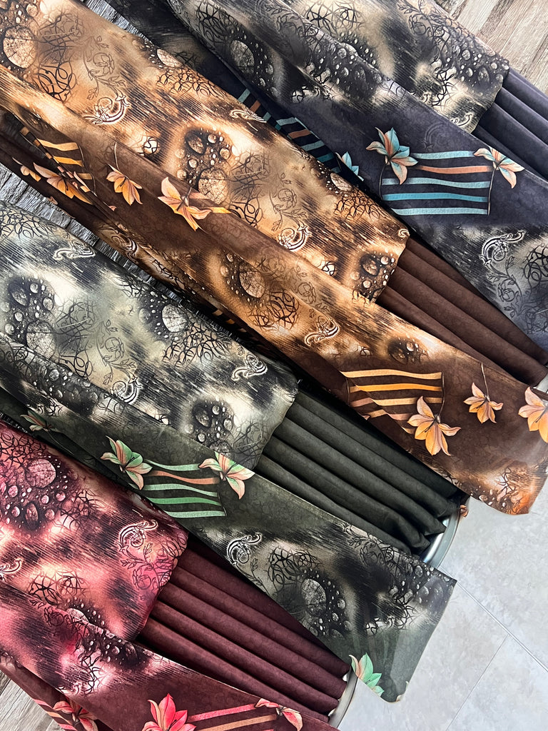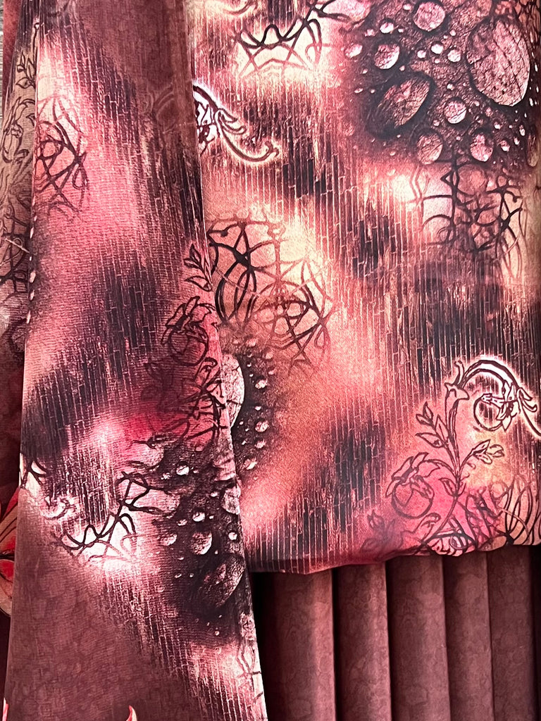 Beautifully flowy, premium quality french crepe fabric with printed chiffon dupatta.