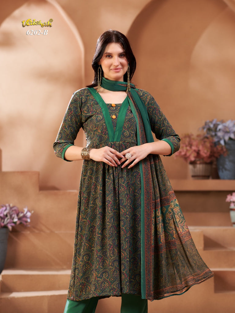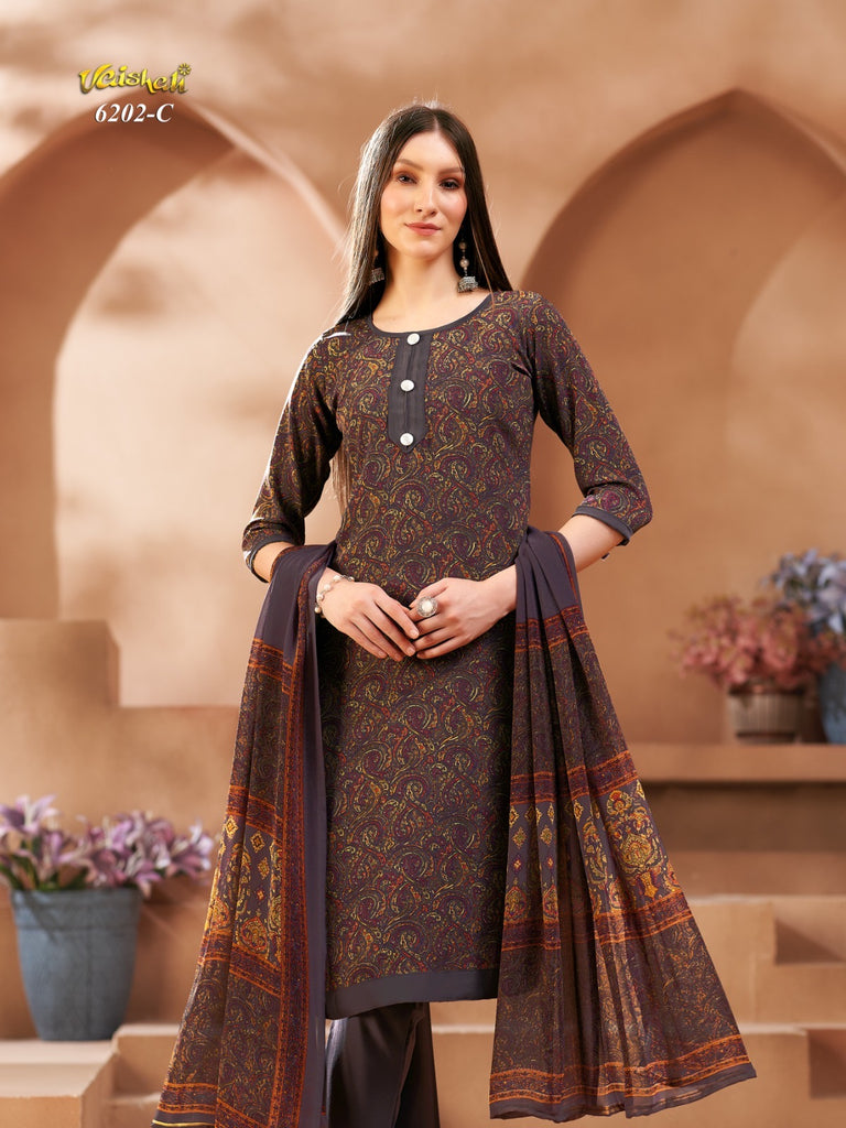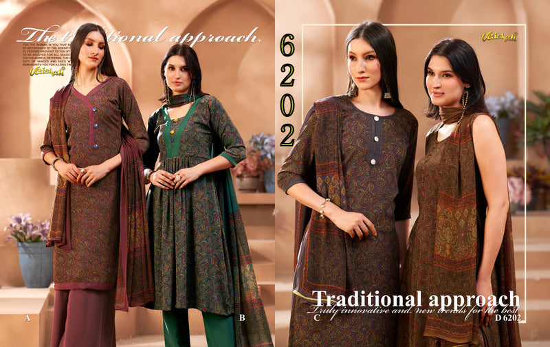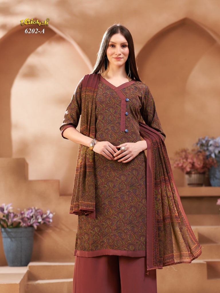 Exquisite quality unstitched french crepe with printed chiffon dupatta.