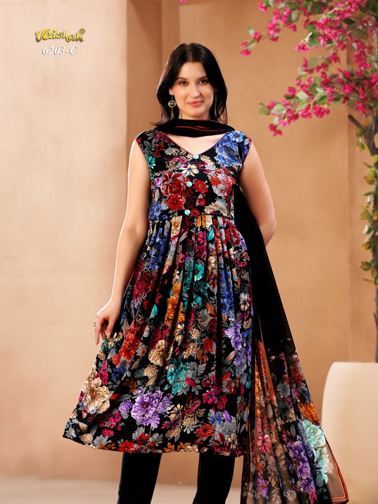 Exquisite quality unstitched french crepe with printed chiffon dupatta.