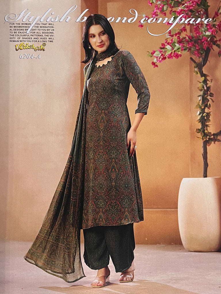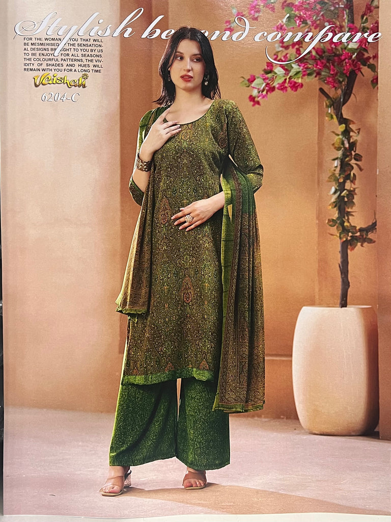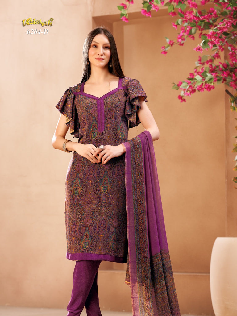 Exquisite quality unstitched french crepe with printed chiffon dupatta.