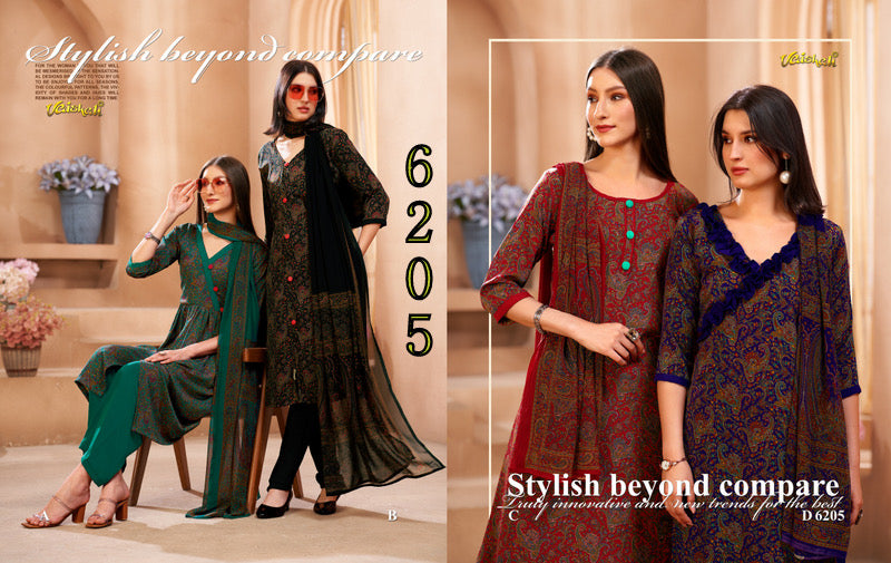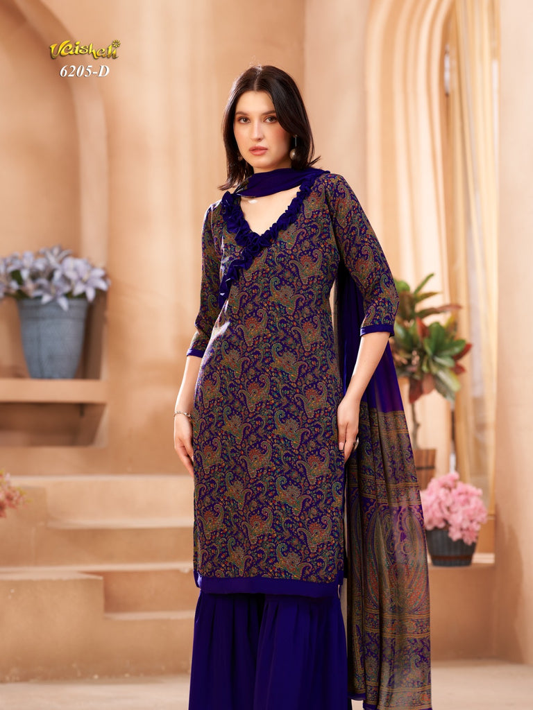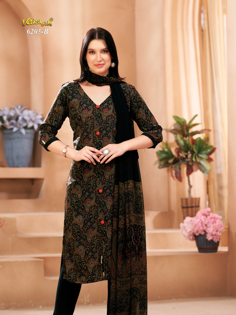 Exquisite quality unstitched french crepe with printed chiffon dupatta.