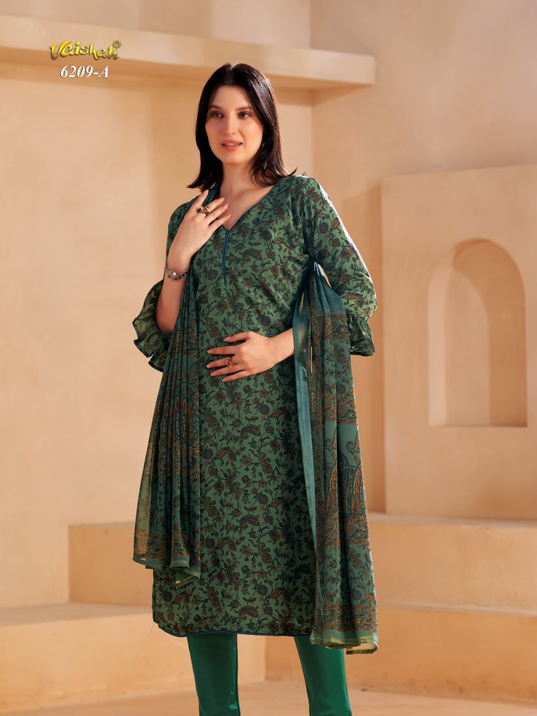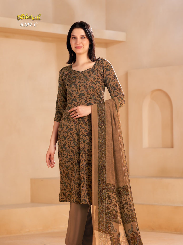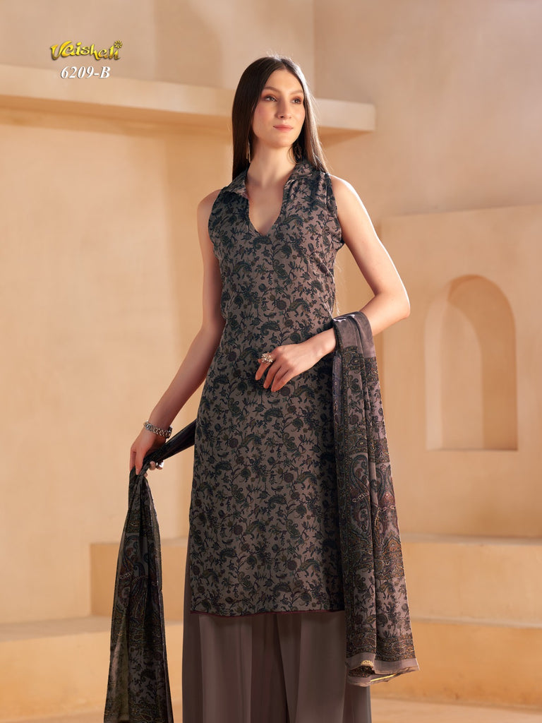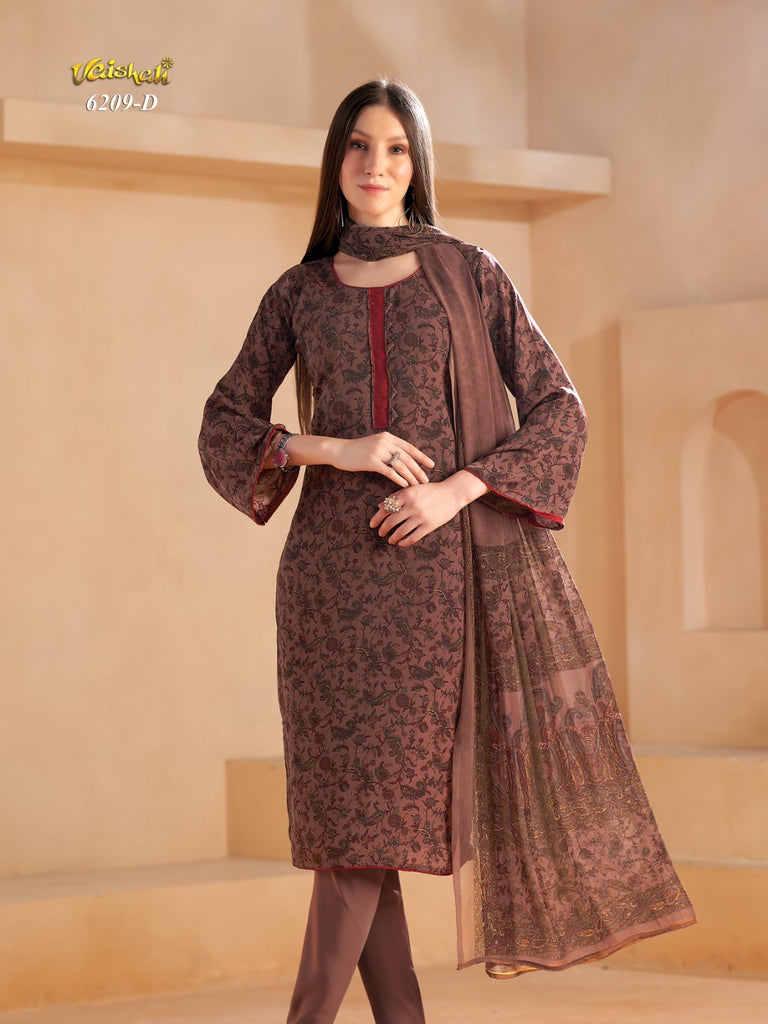 Exquisite quality unstitched french crepe with printed chiffon dupatta.