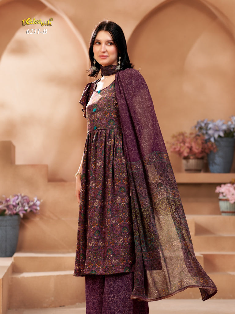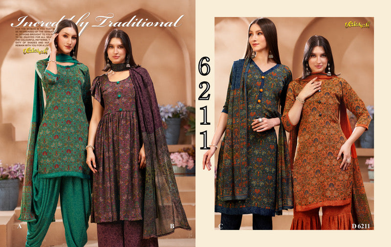 Exquisite quality unstitched french crepe with printed chiffon dupatta.