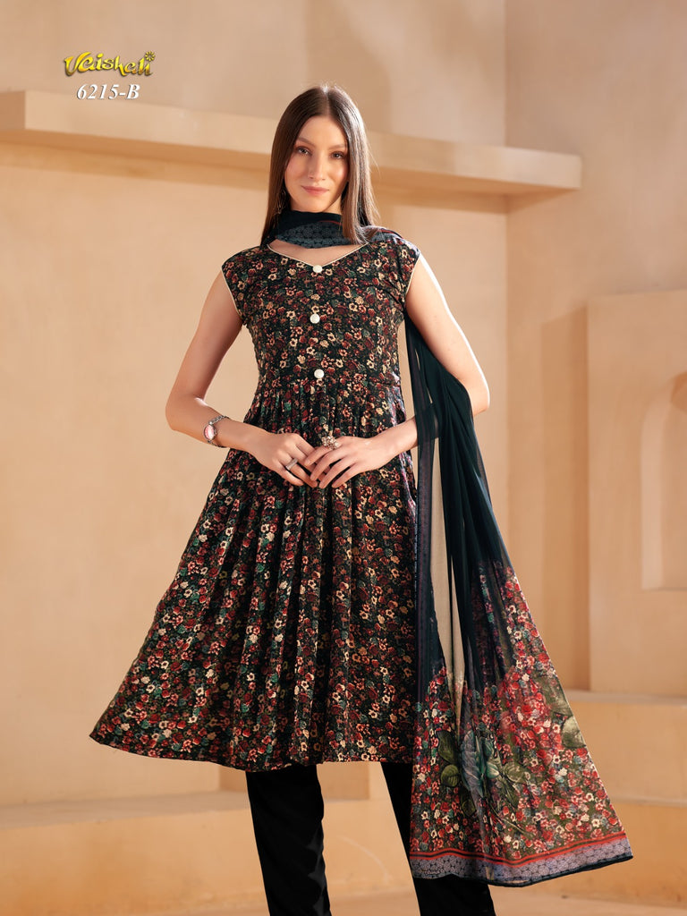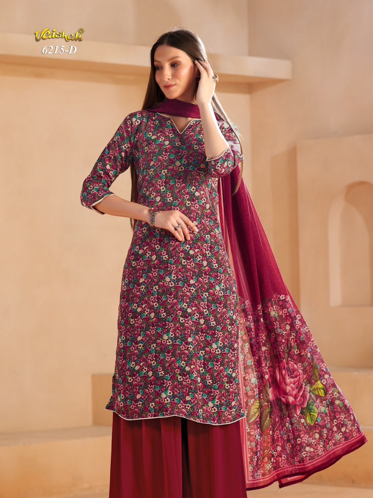 Exquisite quality unstitched french crepe with printed chiffon dupatta.
