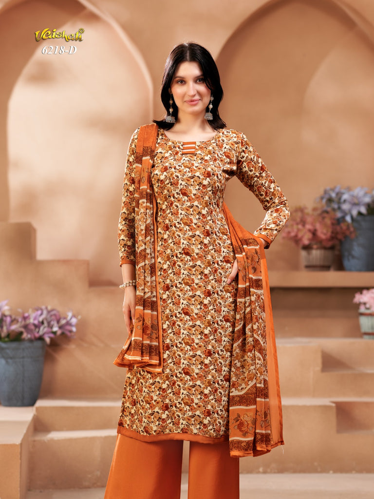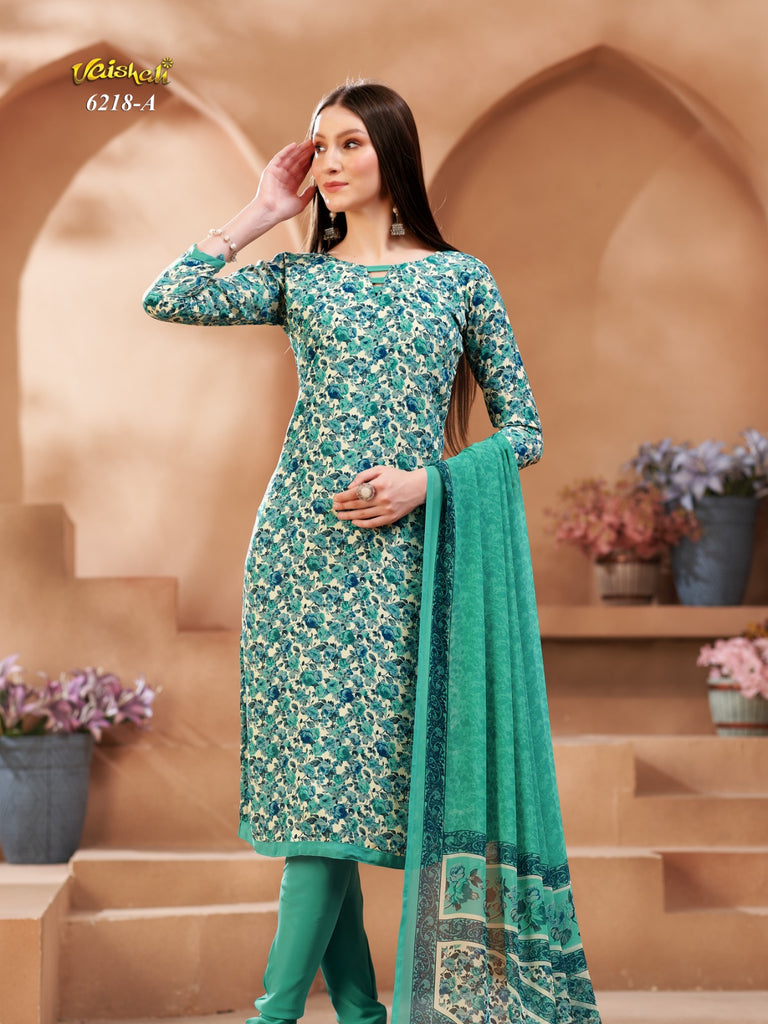 Exquisite quality unstitched french crepe with printed chiffon dupatta.