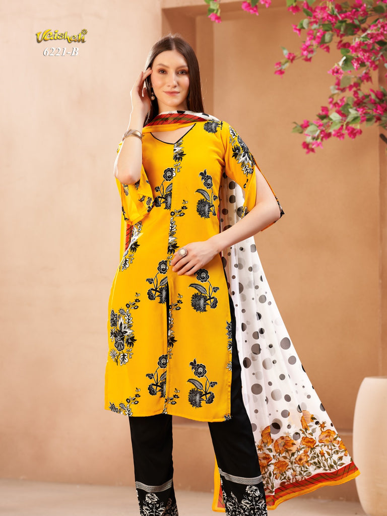 Exquisite quality unstitched french crepe with printed chiffon dupatta.
